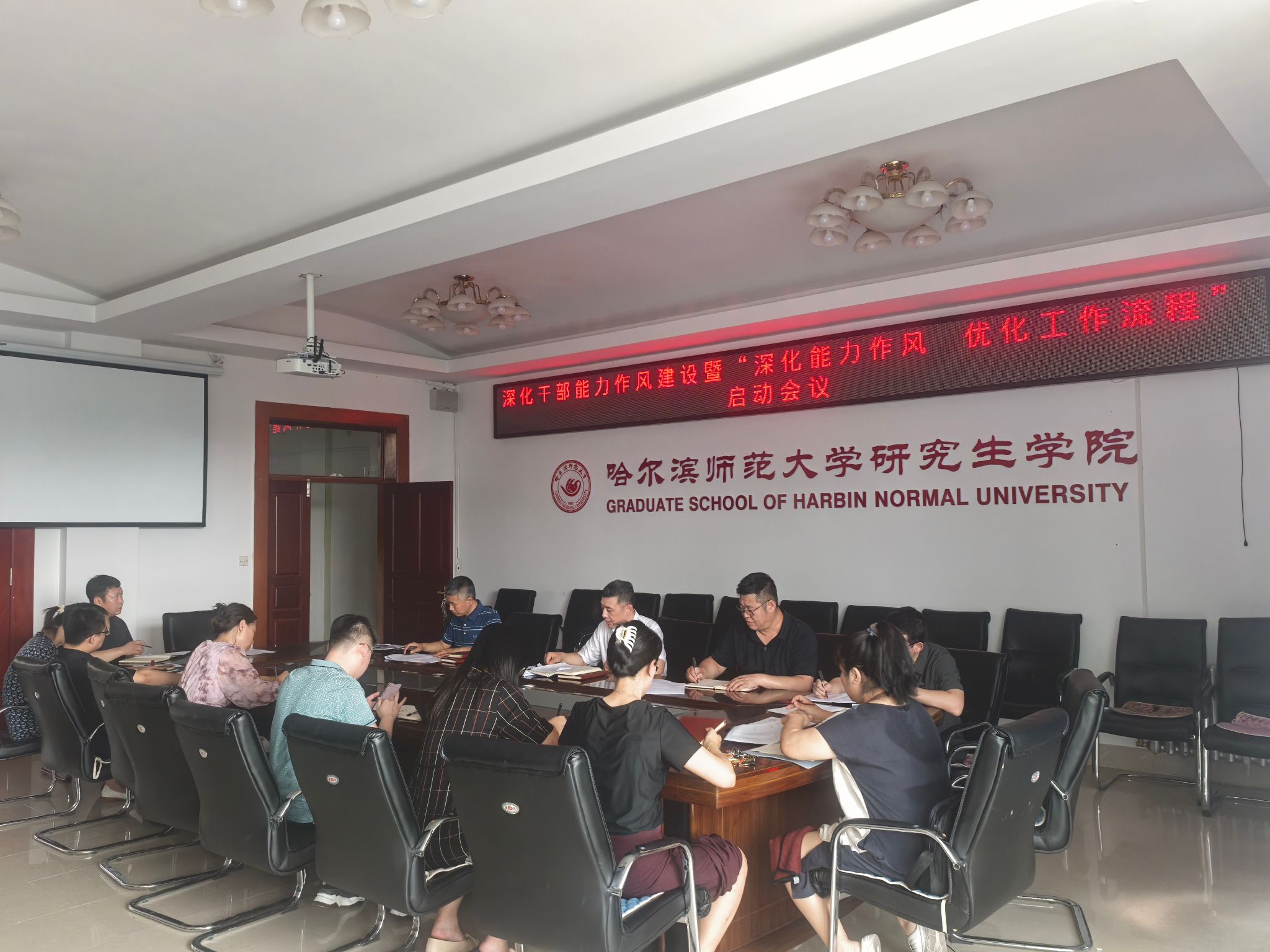 为深入贯彻落实全省能力作风建设会议精神,提升服务师生质效,2025年7月10日,研究生学院召开深化干部能力作风建设暨“深化能力作风 优化工作流程”启动会议,全体干部职工参会,党委书记李贵彬主持会议。