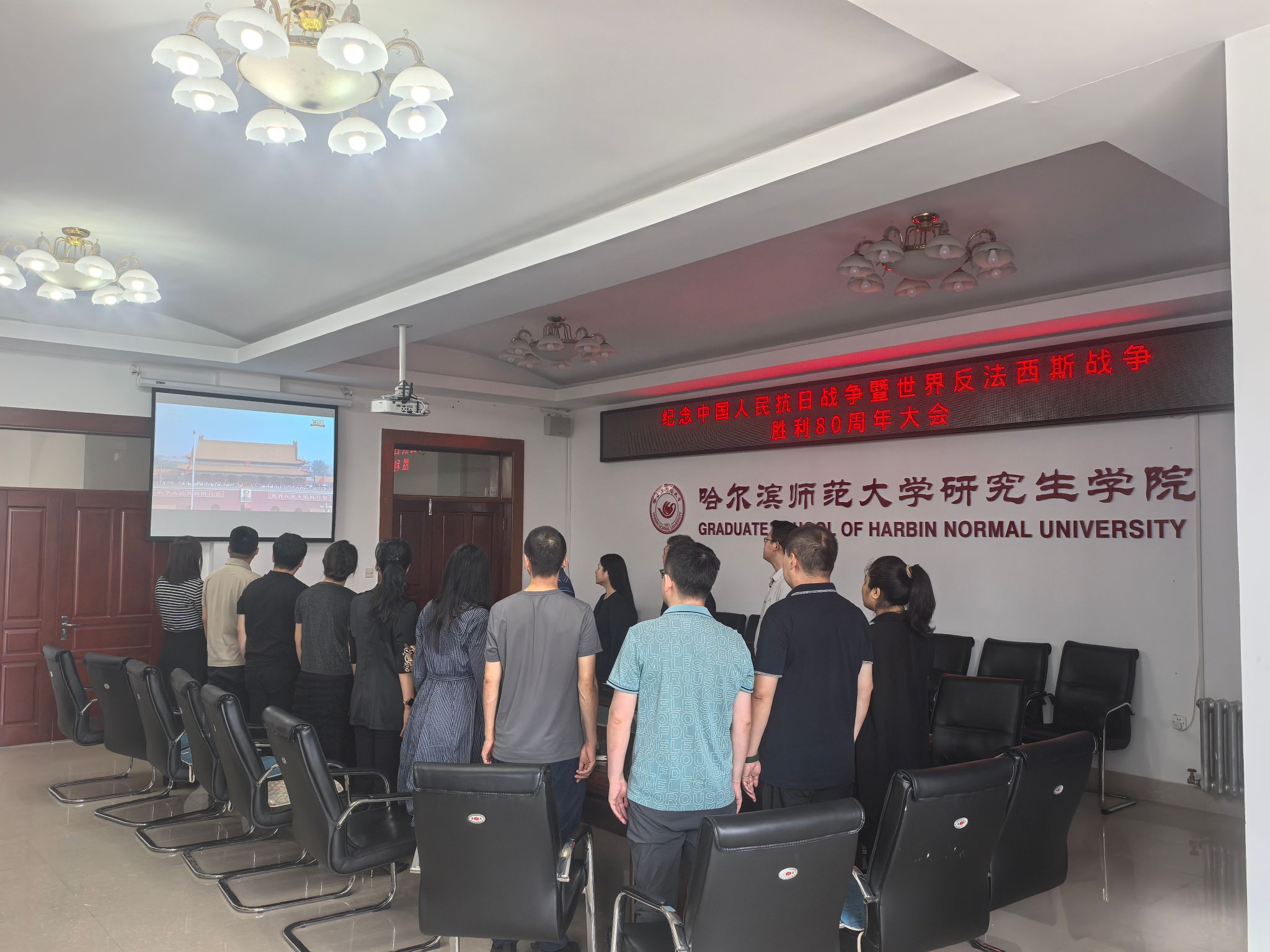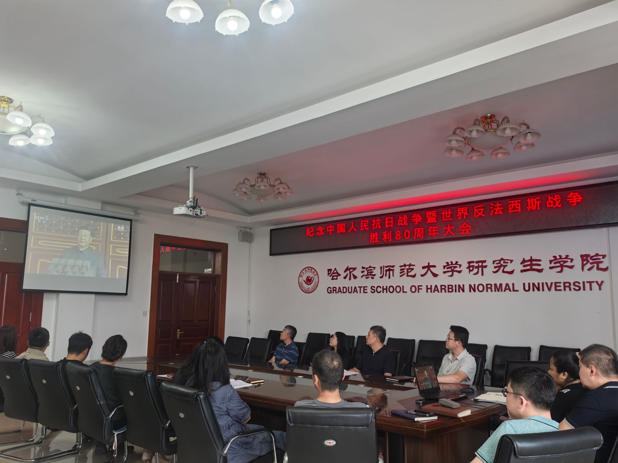 2025年9月3日,纪念中国人民抗日战争暨世界反法西斯战争胜利80周年大会在北京天安门广场隆重举行,中共中央总书记、国家主席、中央军委主席习近平发表重要讲话并检阅部队,研究生学院党委理论学习中心组以扩大学习会的形式组织全体干部职工于研究生院楼312会议室集中观看现场直播。